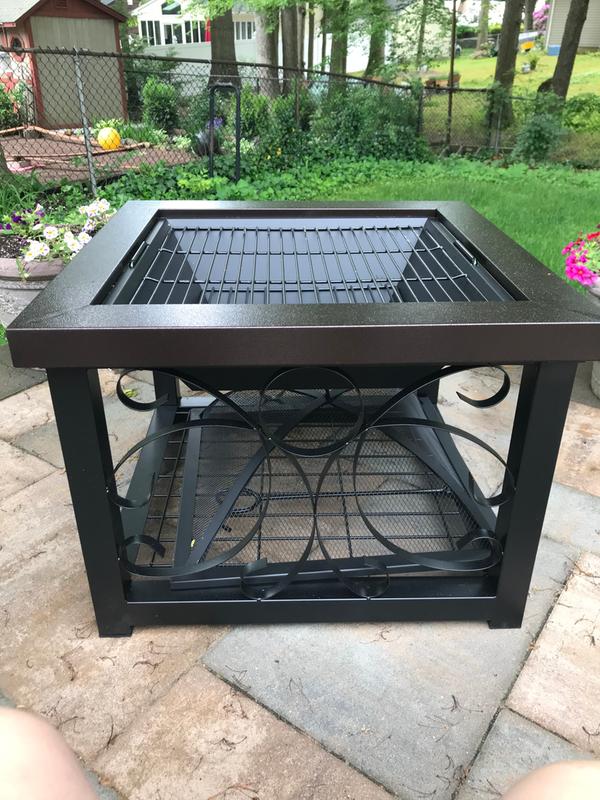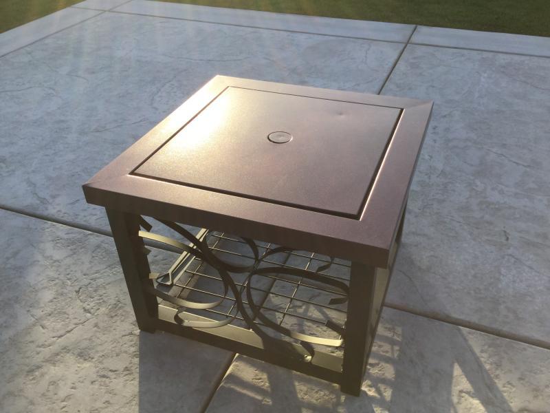 The square pit is surrounded by a bronze finished surface, there is decorative iron work on sides, the the hammer tone surface is designed to be durable and the metal on the screen is protected there is a lot of talk about the good looks of this firepit/table but there are a few reviewers warning that summary: The bronze finish will look good on many styles of patio tables, and it operates on standard 1 lb. Keep additional logs on the bottom shelf. Is this fire sense bronzed cocktail table fire pit still a recommendable purchase. 26 long fire table/ trough burner w mounting kit ss316.